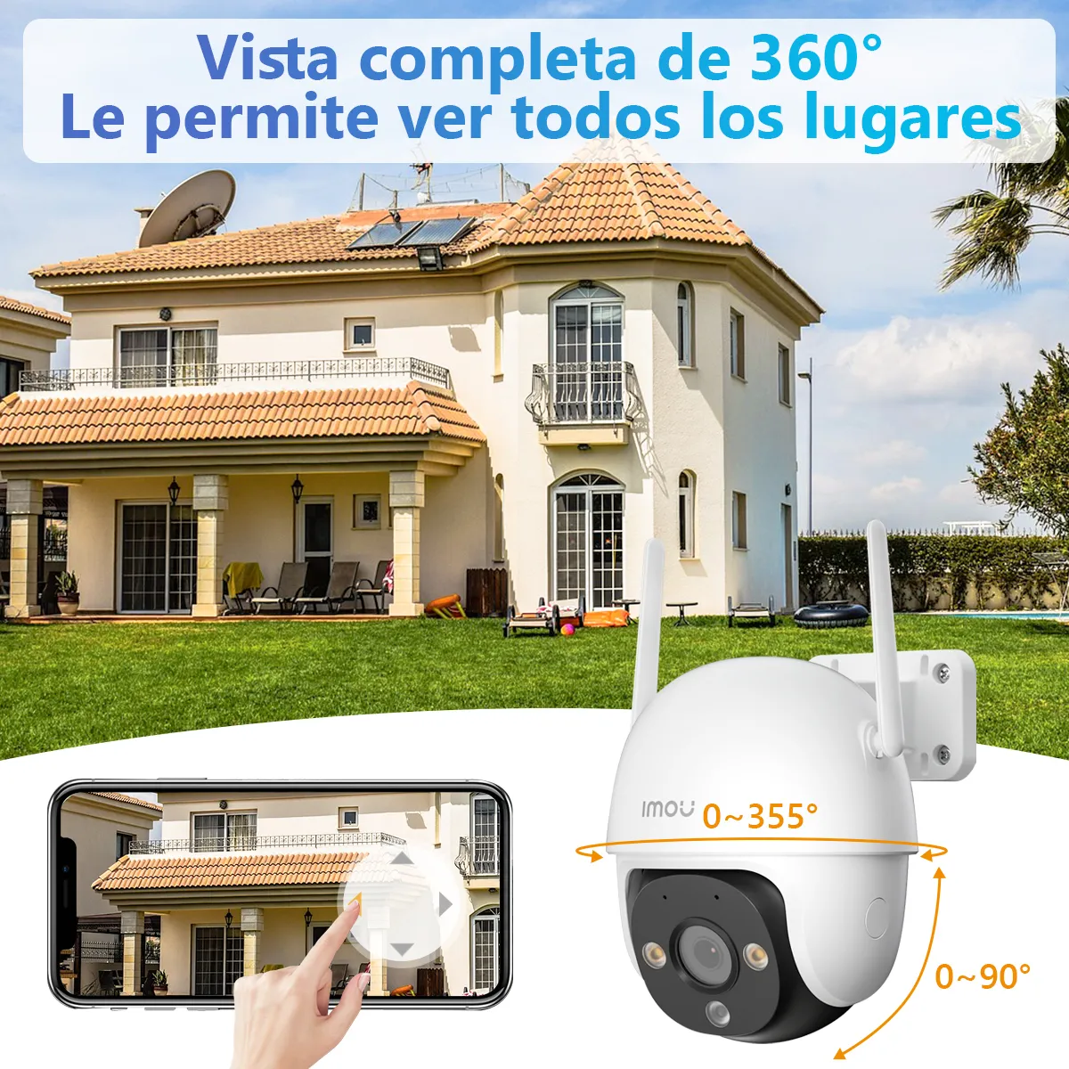 Cuenta con seguimiento automático, audio bidireccional, alertas inmediatas al celular y sistema de disuasión con luz y sonido. Su certificación IP66 garantiza un funcionamiento confiable frente a lluvia, polvo y climas extremos.