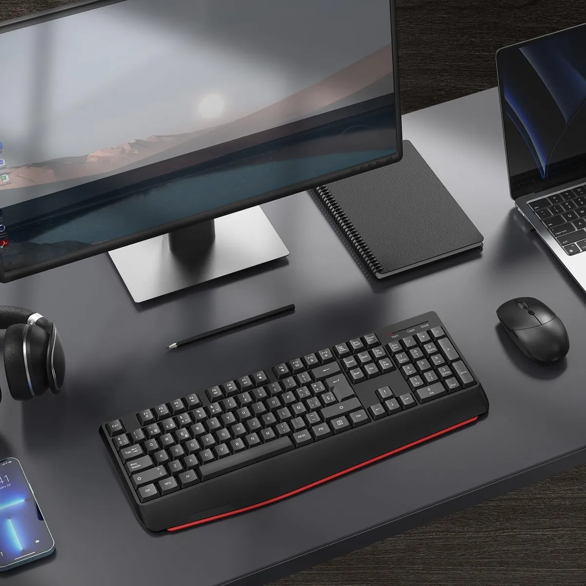 Conexión estable plug-and-play con un solo receptor USB y alcance de hasta 10 m. Diseño ergonómico para uso cómodo prolongado. Ratón óptico con DPI ajustable (1000/1200/1600). Teclado completo con teclas multimedia. Ahorro de energía con apagado automático.