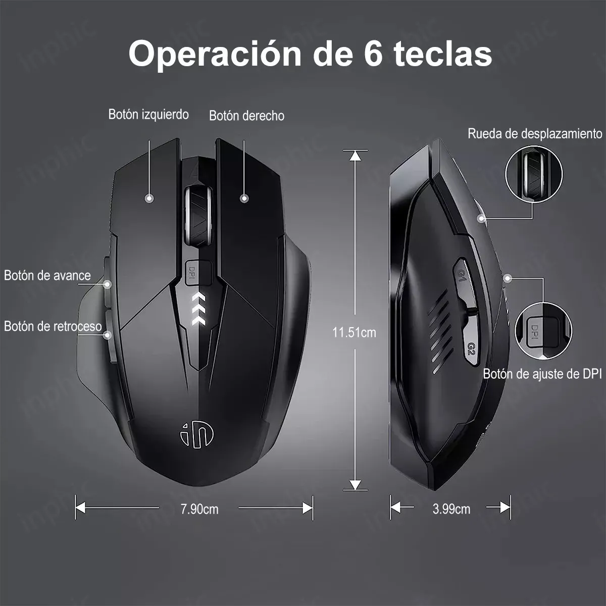 Mouse Inalámbrico Bluetooth/2.4g 3Modos Recargable Gamer Ergonomico